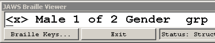 In JAWS' braille viewer, when focusing certain form fields, information about them is displayed like this: