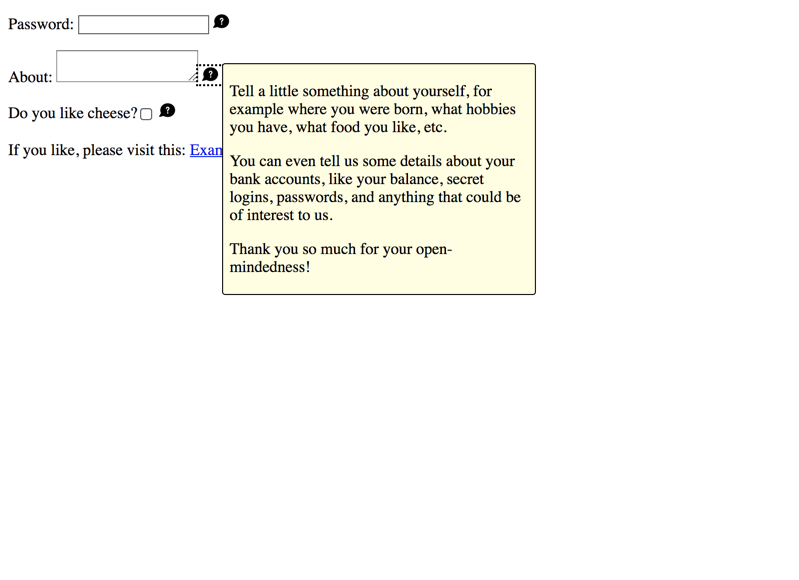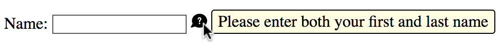 - A tooltip attached to a text input, describing it as "required", or giving details about what to enter specifically.